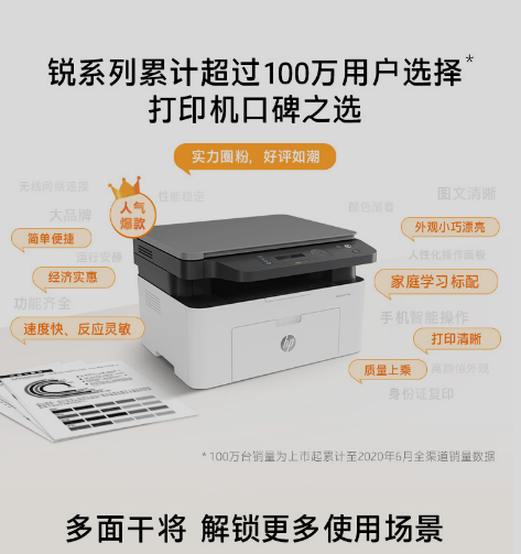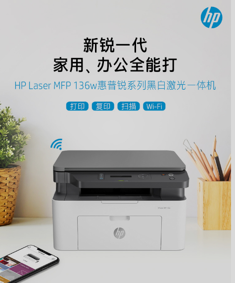 惠普(HP)136w 銳系列黑白激光多功能一體機(jī) 三合一 打印復(fù)印掃描 M1136升級(jí)款無(wú)線(xiàn)版