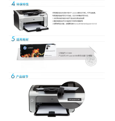 參數 [商品名稱] 惠普(HP)P1108 [最大支持幅面] A4 [打印速度] 18頁/分 [品牌] 惠普(HP) [型號] P1108